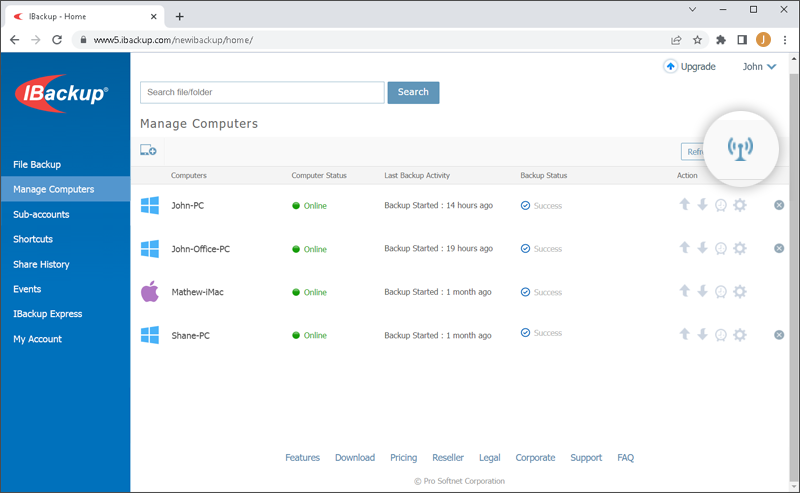 The IBackup web interface gives you the option to make changes to all your computers at the same time.