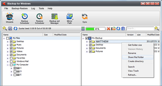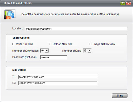 Note: Sharing option is available only for IBackup accounts with default encryption.