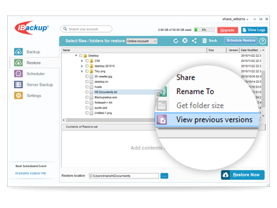 If you make any erroneous modifications to your files and backup them, IBackup's file versioning proves very beneficial, as it enables you to restore any previous versions.